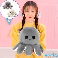 Λούτρινο χταπόδι μεγάλου μεγέθους (40x20cm) όπου αλλάζει διάθεση! Πιέζετε το κεφάλι του μέσα και το γυρνάτε ανάποδα και από την μια στιγμή στην άλλη γίνεται από θυμωμένο χαμογελαστό και αλλάζει χρώμα! Πολύ αστείο δώρο, ιδανικό για όλες τις περιστάσεις!