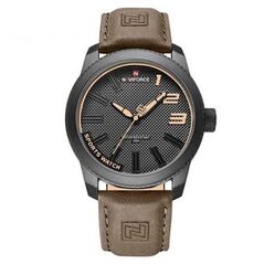 Ανδρικό Casual Ρολόι Χειρός Αδιάβροχο με Δερμάτινο Λουράκι Naviforce Καφέ Σκούρο. Ρολόι δημιουργικού σχεδιασμού, casual στυλ μόδας.