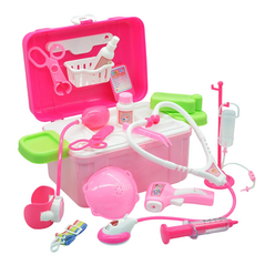 Ροζ παιδικό βαλιτσάκι γιατρού με 14 αξεσουάρ και φωτισμό. Μετατρέπεται σε επιφάνεια εξέτασης και προσφέρει δημιουργικό παιχνίδι ρόλων που ενισχύει τη φαντασία, την κοινωνικότητα και την αυτοπεποίθηση των παιδιών.