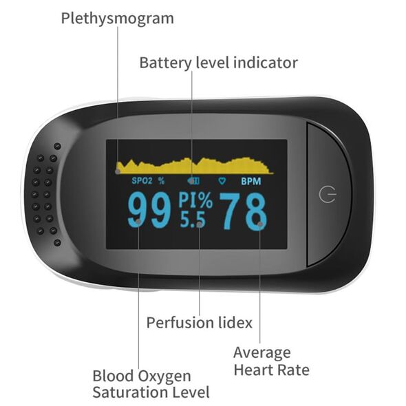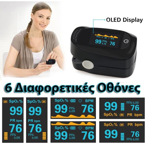 Παλμικό Οξύμετρο Δακτύλου με Ειδοποιήσεις, Γράφημα, Μεγάλη Οθόνη 6 Ενδείξεων LCD Fingertip Pulse Oximeter, SpO2, Heart Rate Sensor Health