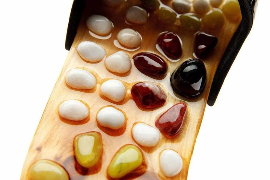 Οι Παντόφλες Foot Treasure έχουν 39 "πέτρες" τοποθετημένες σε καίρια σημεία, που κάνουν μασάζ στα πέλματα καθώς περπατάτε. Έτσι, επιτυγχάνεται ενεργειακή ισορροπία.