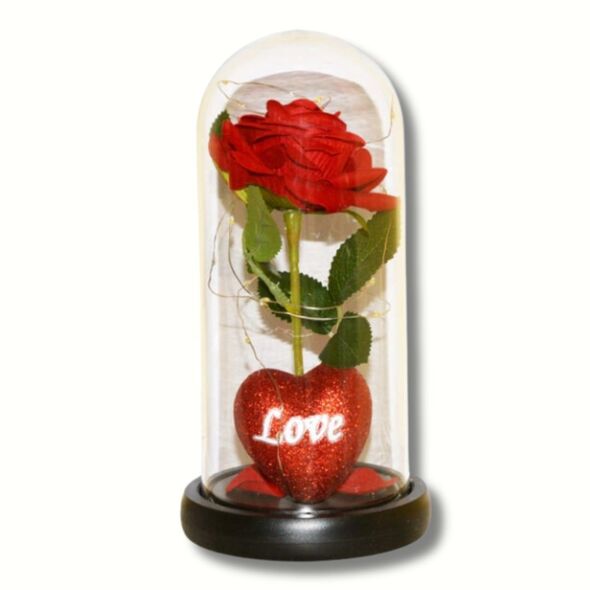 Παντοτινό Τεχνητό Κόκκινο Τριαντάφυλλο σε Γυάλινο Βάζο με LED Φωτισμό 15 x 8.5 cm