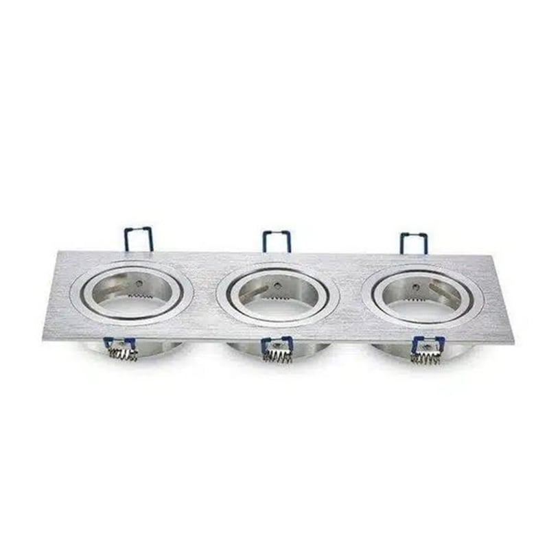 To Παραλληλόγραμμο τριπλό φωτιστικό χωνευτό, νικελίου χρώματος, για GU10 ή MR16, αποτελεί μια κομψή και λειτουργική επιλογή φωτισμού για τον εσωτερικό χώρο σας.