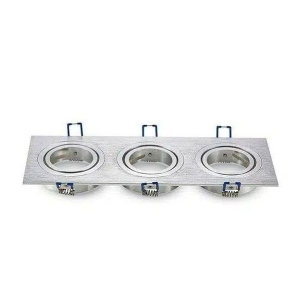 Παραλληλόγραμμο Χωνευτό Κινούμενο Νίκελ Πλαίσιο για Σποτ GU10 – MR16 Τριπλό Ασημί 25.5x9.1cm Aigostar