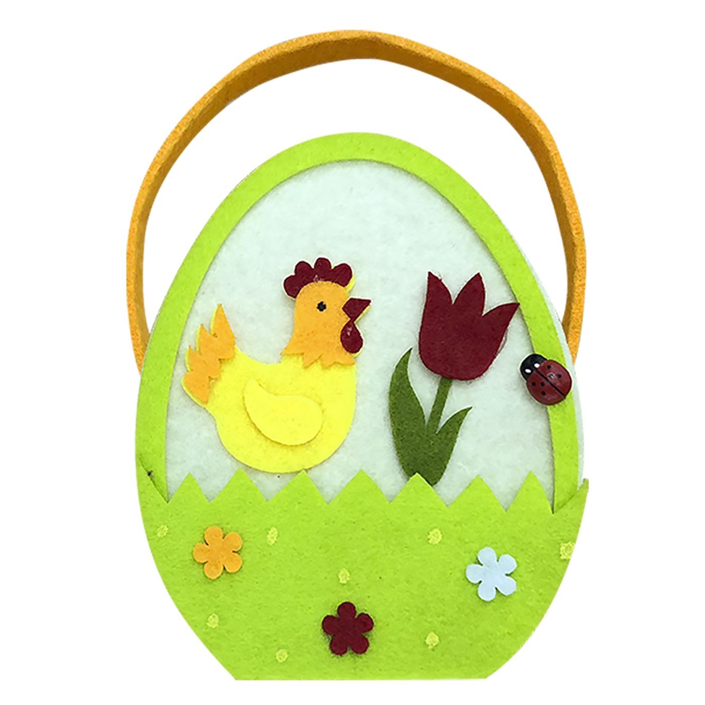 Πασχαλινό διακοσμητικό καλάθι με σχέδιο κότα, λουλούδι και χερούλι. Ιδανικό για αυγά, δωράκια και πασχαλινές συνθέσεις. Ελαφρύ, πρακτικό και κατάλληλο για στολισμό σπιτιού, βιτρίνας ή επαγγελματικών χώρων.