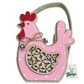 Πασχαλινό Τσόχινο Καλάθι με Ροζ Ξύλινη Κότα & Καμπανάκι 19x11x7cm