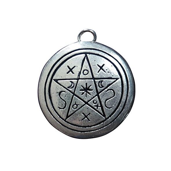 Περικυκλωμένη από ιερά και μυστικά σύμβολα της Μαγείας σε ένα ασημένιο δίσκο οιωνών και εξουσίας, η πεντάλφα των σκιών προστατεύει και αποκρύπτει αρχαία μυστήρια.Μέγεθος: 38 x 25mm