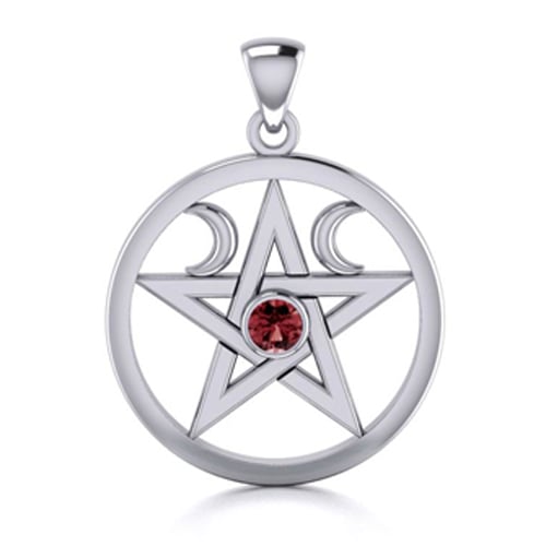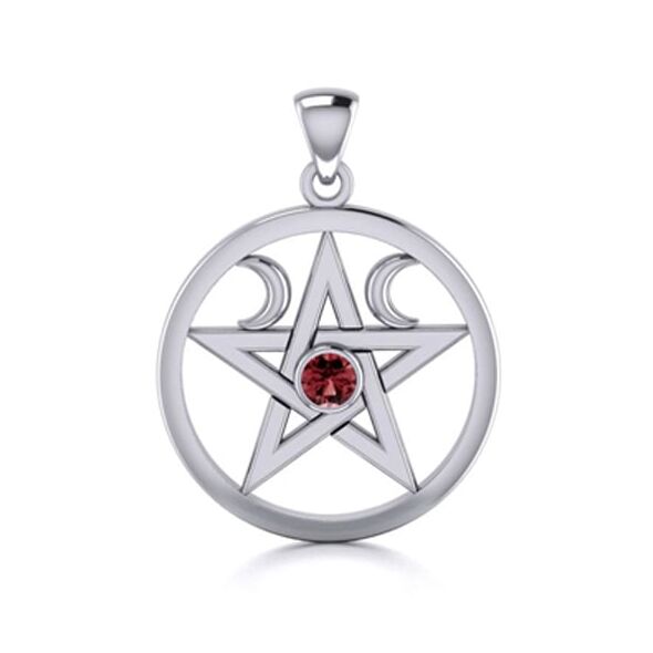 Πεντάλφα με Διπλή Ημισέληνο και Κόκκινο Γρανάτη για Έλξη, Γοητεία και Ευημερία – Ασήμι 925°
