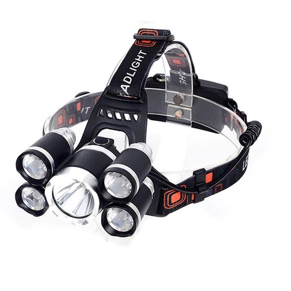 Πενταπλός Φακός LED Κεφαλής - Ποδηλάτου Υψηλής Φωτεινότητας Γκρι - Μάυρο