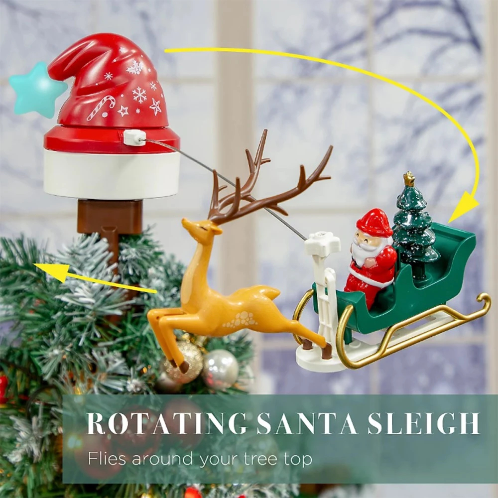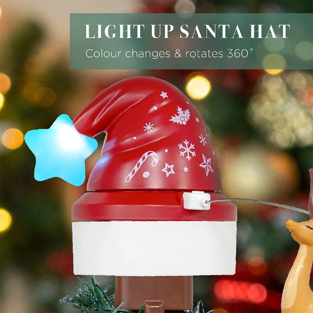 Η Περιστρεφόμενη Κορυφή Χριστουγεννιάτικου Δέντρου με σκούφο Άγιου Βασίλη, LED φωτισμό και μουσική είναι η ιδανική επιλογή για να μεταμορφώσετε το δέντρο σας σε εντυπωσιακό γιορτινό στολίδι.