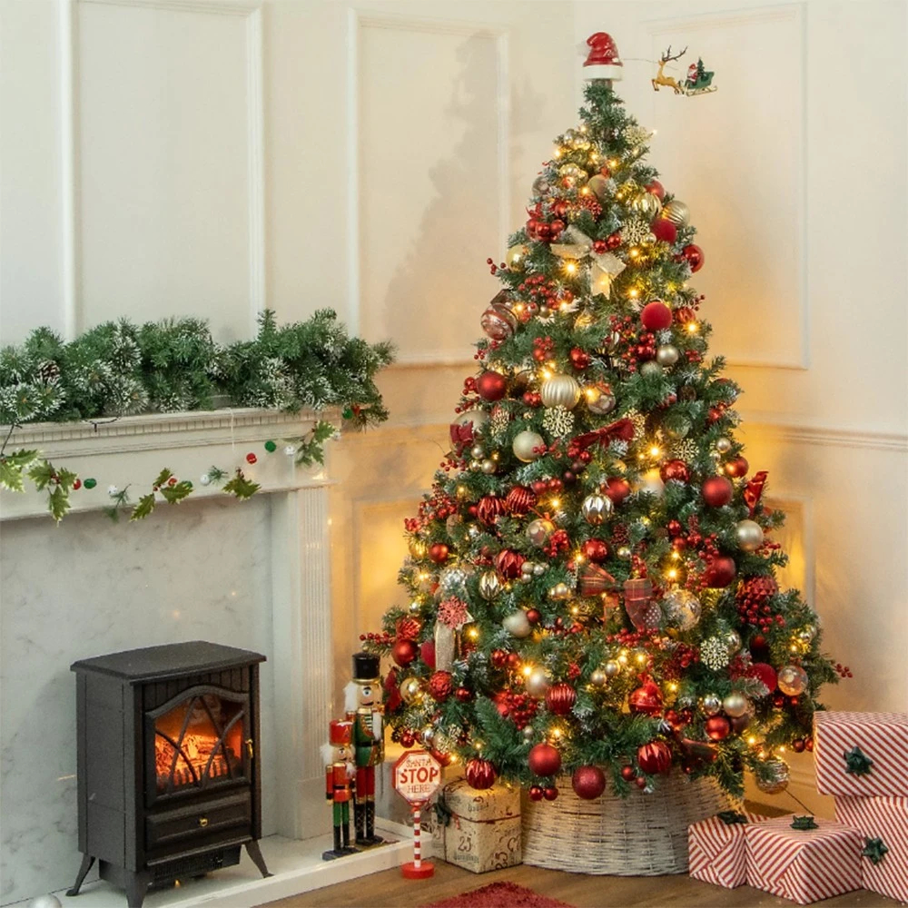 Περιστρεφόμενη Κορυφή Δέντρου με Σκούφο Άγιου Βασίλη, LED και Μουσική – Σετ 10 Τεμαχίων