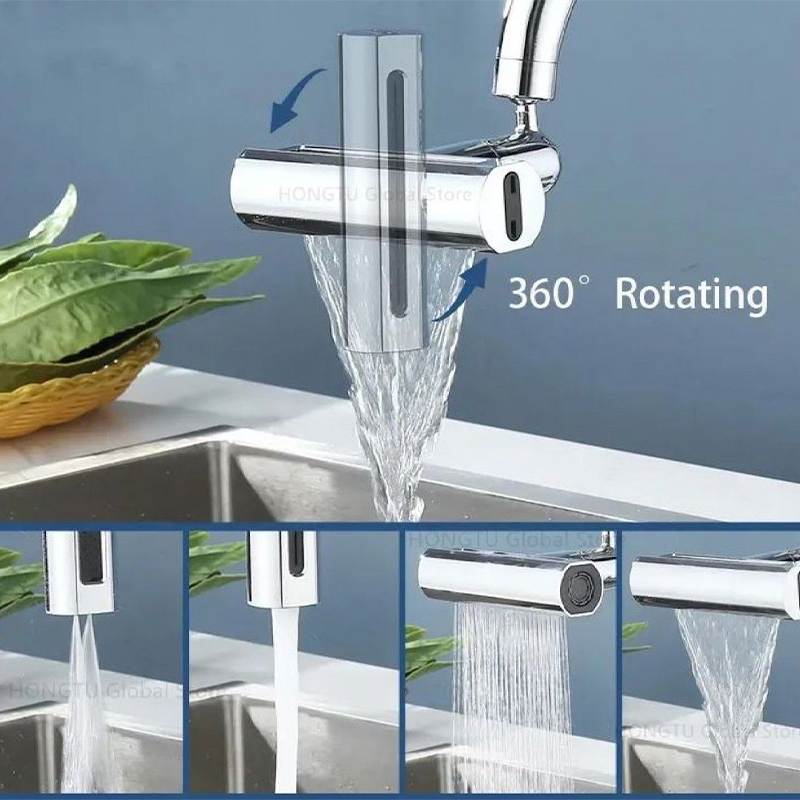Περιστρεφόμενη Πολυλειτουργική Προέκταση Ακροφυσίου Νερού 360° Ασημί
