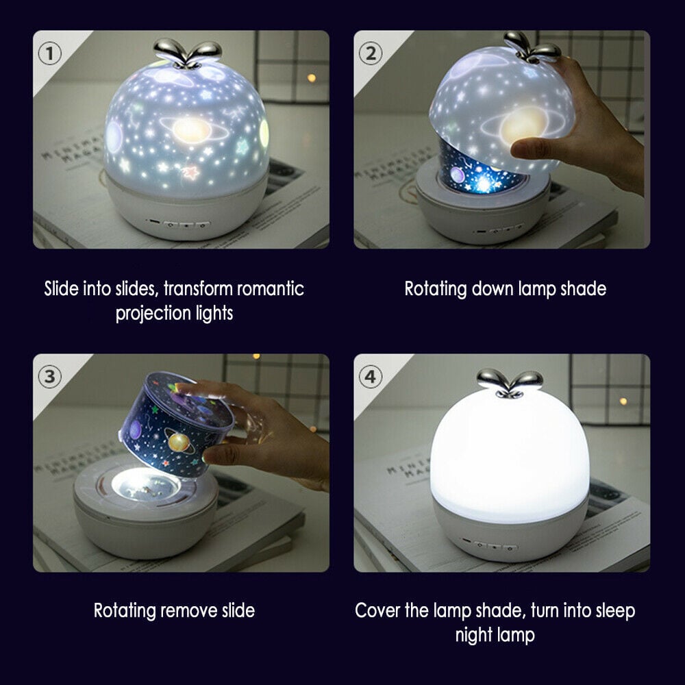 Αφαιρέστε το στρογγυλό καπάκι, και δείτε μαγικά σχέδια να προβάλλονται σε όλο το δωμάτιο και να γεμίζουν το ταβάνι σας!