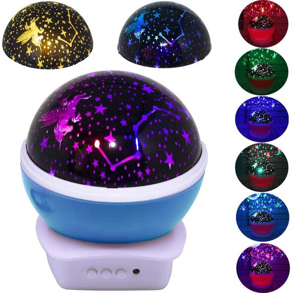 Περιστρεφόμενο Νυχτερινό Φωτιστικό - Προτζέκτορας Δωματίου - Night Light Moon Star Γαλάζιο
