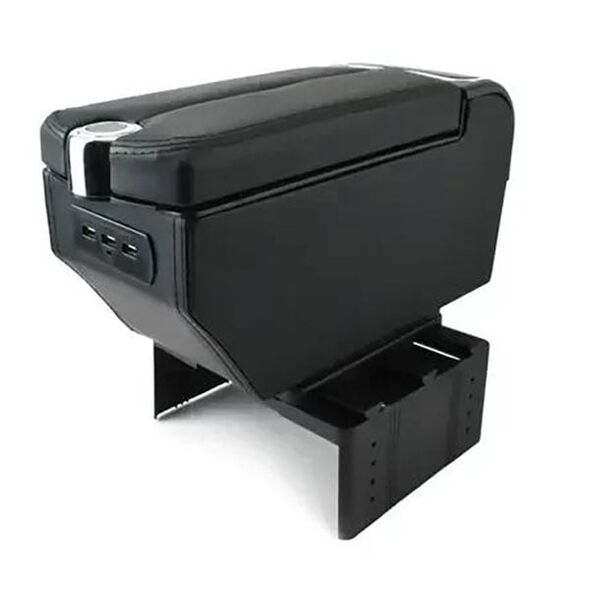 PERVOI Κονσόλα Χειροφρένου από Δερματίνη & 3πλός Φορτιστής USB με Ποτηροθήκη & Τασάκι Universal - Τεμπέλης Αυτοκινήτου Μαύρο