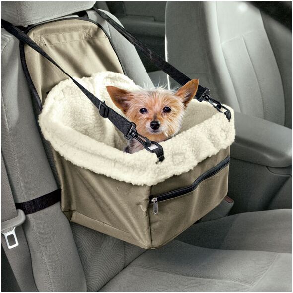 Κάθισμα Ασφαλείας Αυτοκινήτου για το σκυλάκι σας, άνετο, με απομίμηση γούνας sheepskin που βγαίνει και πλένεται. Εύκολη εγκατάσταση στο κάθισμα με ζώνες, θήκη με φερμουάρ για τα αξεσουάρ του σκύλου και τα παιχνίδια του.