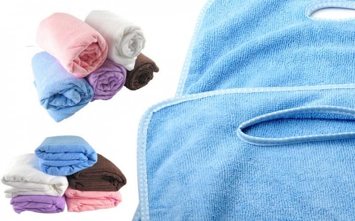 Με 3 απλές κινήσεις, μετατρέπεται σε ένα πρακτικό φόρεμα με το οποίο μπορείτε να κάνετε την υπόλοιπη περιποίηση του σώματός σας, όπως να στεγνώσετε τα μαλλιά σας, να βάλετε κάποια ενυδατική κρέμα ή να βαφτείτε για την βραδινή σας έξοδο χωρίς να λερώσετε τα ρούχα σας!