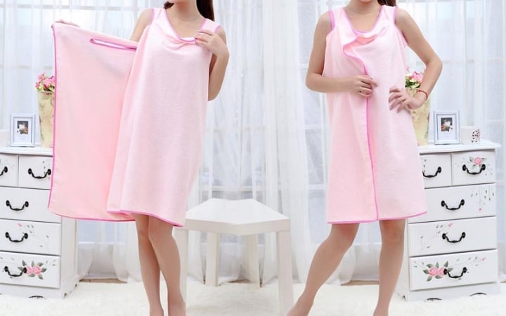 Με 3 απλές κινήσεις, μετατρέπεται σε ένα πρακτικό φόρεμα με το οποίο μπορείτε να κάνετε την υπόλοιπη περιποίηση του σώματός σας, όπως να στεγνώσετε τα μαλλιά σας, να βάλετε κάποια ενυδατική κρέμα ή να βαφτείτε για την βραδινή σας έξοδο χωρίς να λερώσετε τα ρούχα σας!