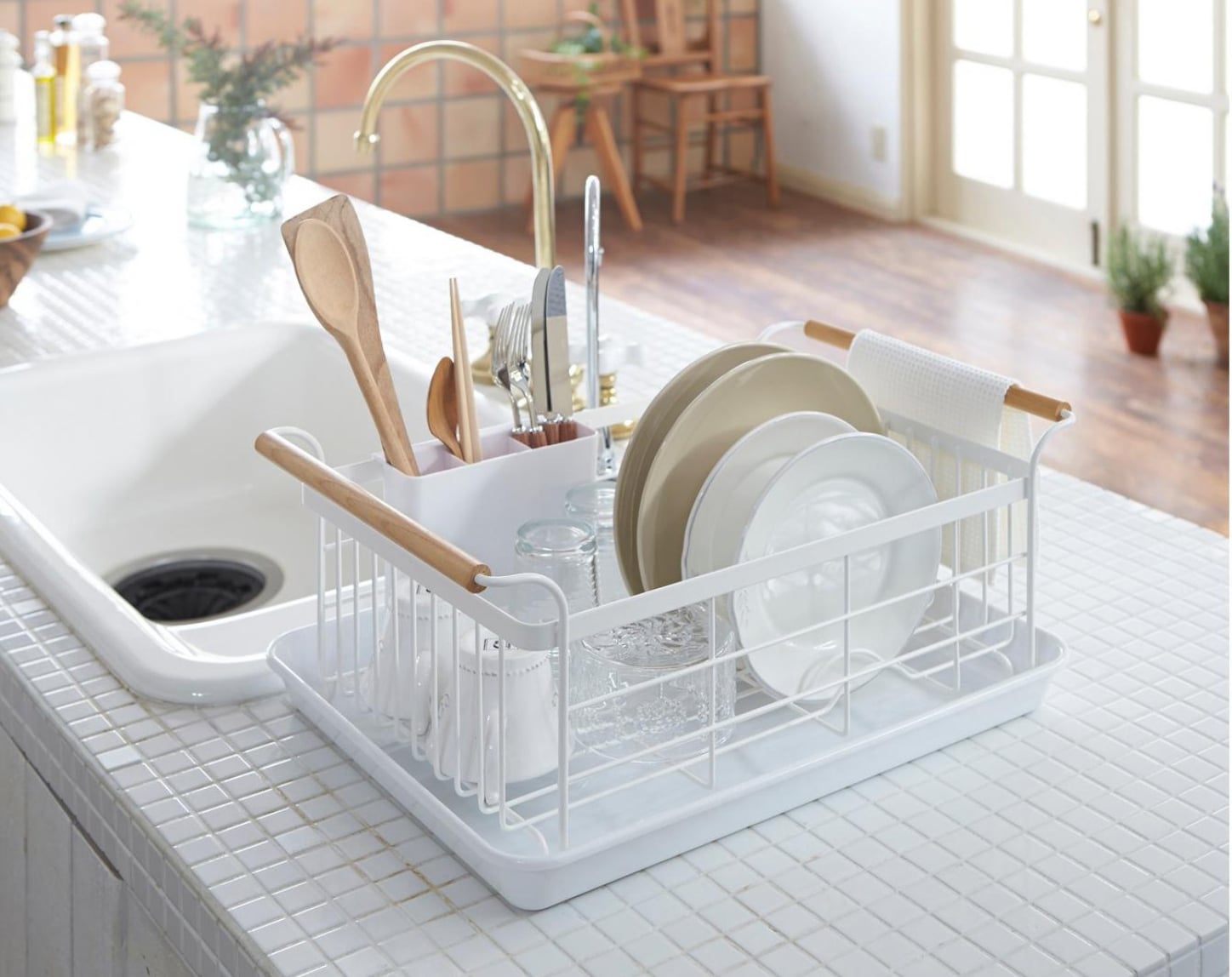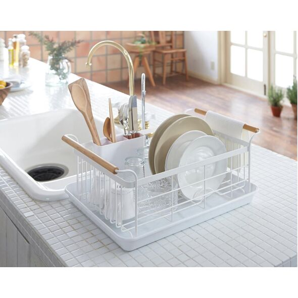 Πιατοθήκη Newport Λευκή Μεταλλική με Μπαμπού Λαβές 42x30x20εκ.