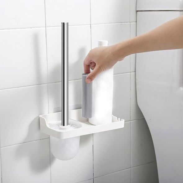 - 1 x Πλαστικό Πιγκάλ Τουαλέτας με Βοηθητικό Ράφι & Επιτοίχια Στήριξη με Κολλητική Μεμβράνη