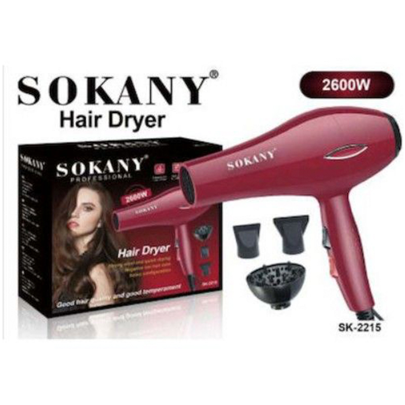 Πιστολάκι μαλλιών της Sokany, που διαθέτει υψηλή ισχύ με δυνατή ροή αέρα για γρήγορο στέγνωμα και φορμάρισμα των μαλλιών.
