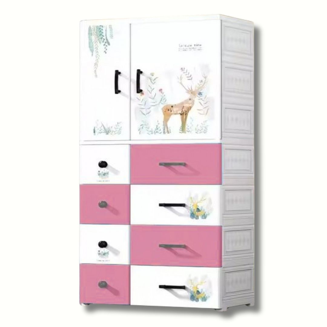 Πλαστική τροχήλατη ντουλάπα 146.5 x 67.5 x 40.5 cm με 1 ντουλάπι και 8 συρτάρια. Ανθεκτική, ελαφριά και εύκολη στη μετακίνηση, με μοντέρνο σχέδιο. Ιδανική για υπνοδωμάτια, παιδικά δωμάτια και αποθηκευτικούς χώρους. Μπορείτε να επιλέξετε ανάμεσα σε μπλε, γκρι, ροζ, πράσινο.