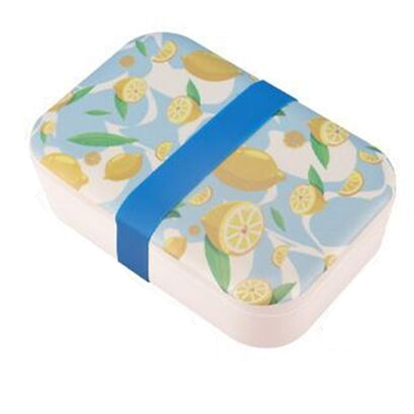 Ένα μοντέρνο δοχείο-τάπερ φαγητού με σχέδιο από όμορφα λεμόνια σε γαλάζιο-εκρού χρώμα απαραίτητο για όσους τρώνε έξω.