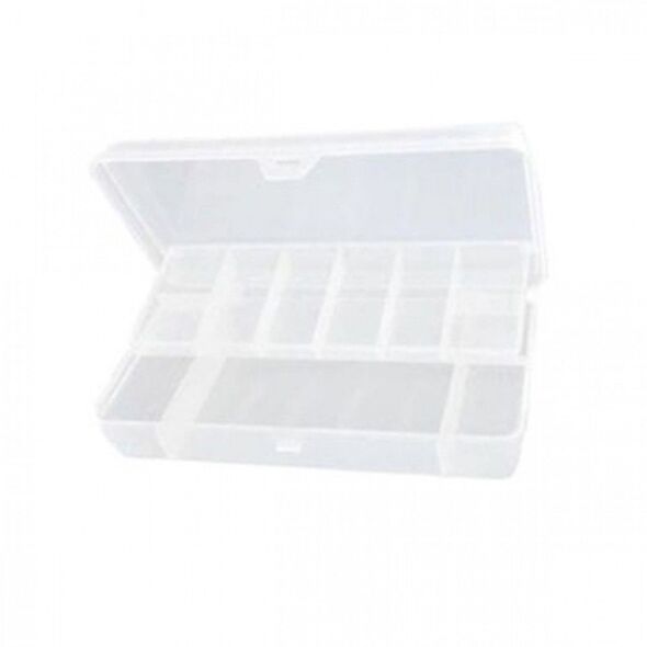 Πρακτικό, ευρύχωρο πλαστικό βαλιτσάκι με κούμπωμα ασφαλείας.Το εσωτερικό του κουτιού είναι χωρισμένο σε διάφορα μικρά τμήματα για να οργανώνετε και να τοποθετείται μικροαντικείμενα όπως αγκίστρια, βαρίδια, και ότι άλλο χρειαστεί.