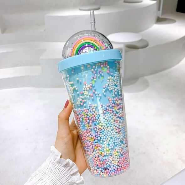 Απολαύστε τα αγαπημένα σας ροφήματα με το πιο γλυκό και παιχνιδιάρικο ποτήρι, διακοσμημένο με τα χρώματα του Ουράνιου Τόξου!