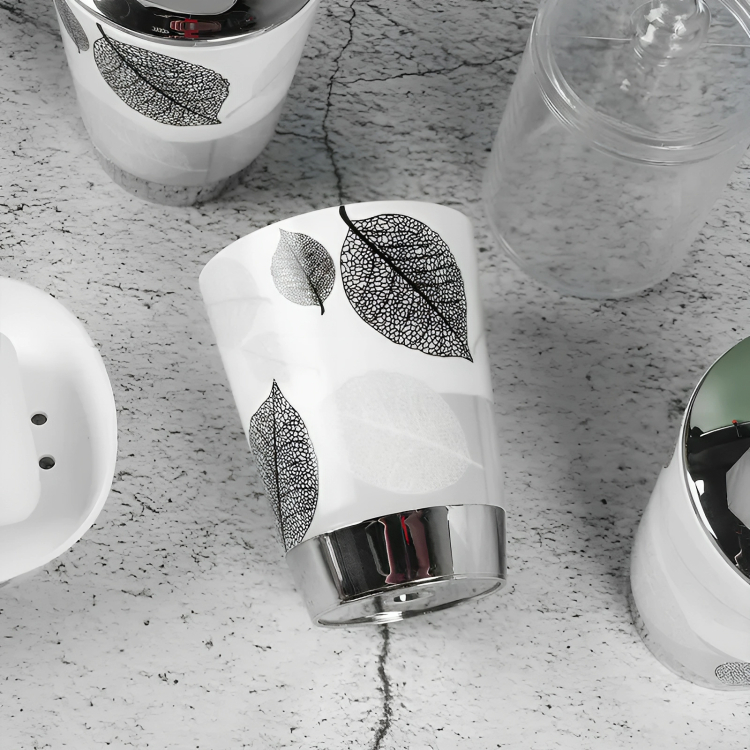Πλαστικό Ποτήρι Μπάνιου - Λευκό Γκρι με Φύλλα