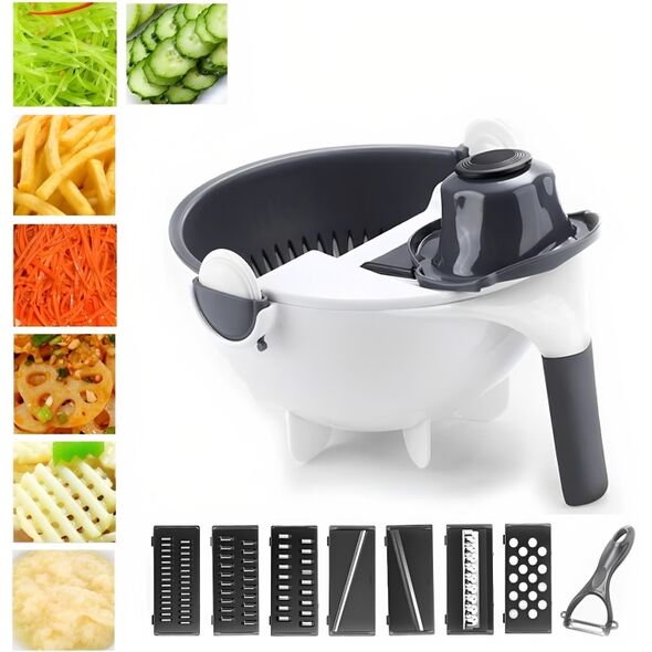 Πλαστικός Πολυκόπτης Λαχανικών με 7 Λεπίδες Κοπής, Έξυπνο Στραγγιστήρι και Αποφλοιωτή
