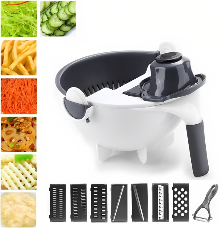 Πλαστικός Πολυκόπτης Λαχανικών με 7 Λεπίδες Κοπής, Έξυπνο Στραγγιστήρι και Αποφλοιωτή
