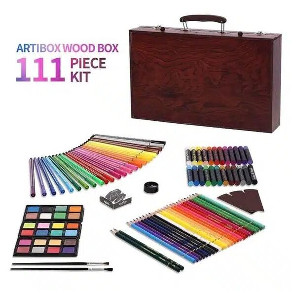 Πλήρες Φορητό Σετ Ζωγραφικής σε Ξύλινο Βαλιτσάκι Μεταφοράς- 111 Τεμάχια