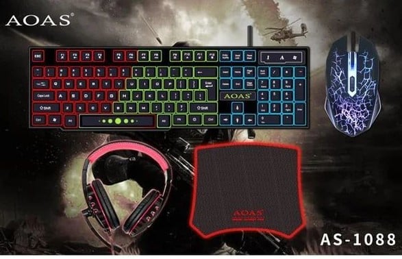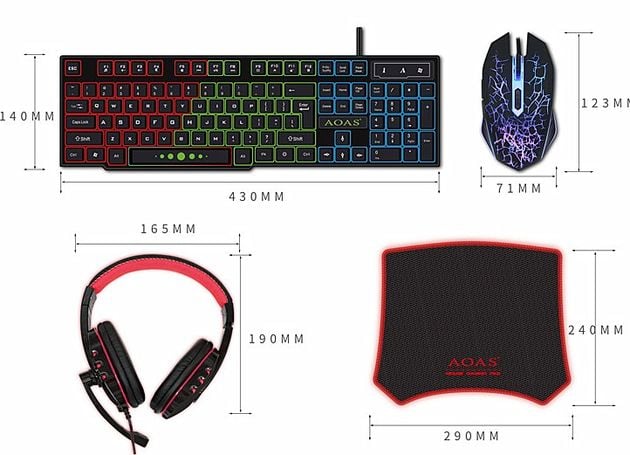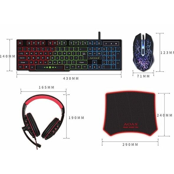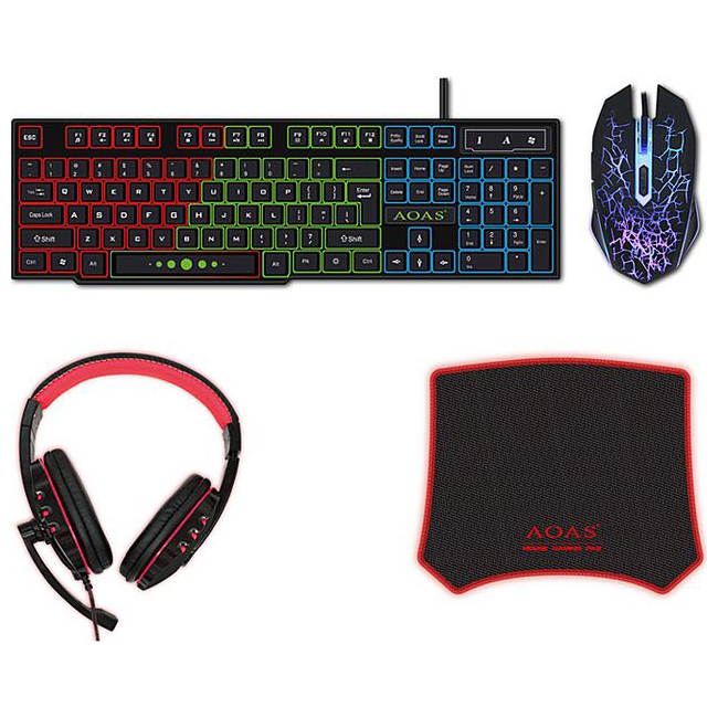 Πλήρες Gaming Set 4 Τεμαχίων RGB με Πληκτρολόγιο Keyboard, Ποντίκι Gaming Mouse, Ακουστικά Wired Headset & Mouse Pad της AOAS
