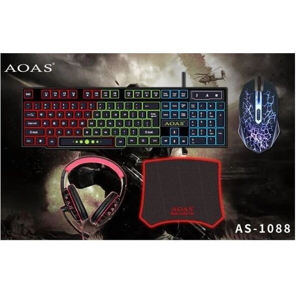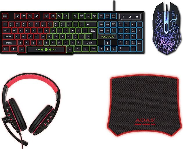 Πλήρες Gaming Set 4 Τεμαχίων RGB με Πληκτρολόγιο Keyboard, Ποντίκι Gaming Mouse, Ακουστικά Wired Headset & Mouse Pad της AOAS