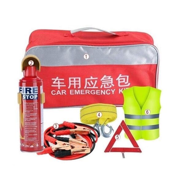 Πλήρες Κιτ Έκτακτης Ανάγκης Αυτοκινήτου με Πυροσβεστήρα Αφρού - Γιλέκο Ασφαλείας - Καλώδια Μπαταρίας - Iμάντα Ρυμούλκησης & Προειδοποιητικό Τρίγωνο