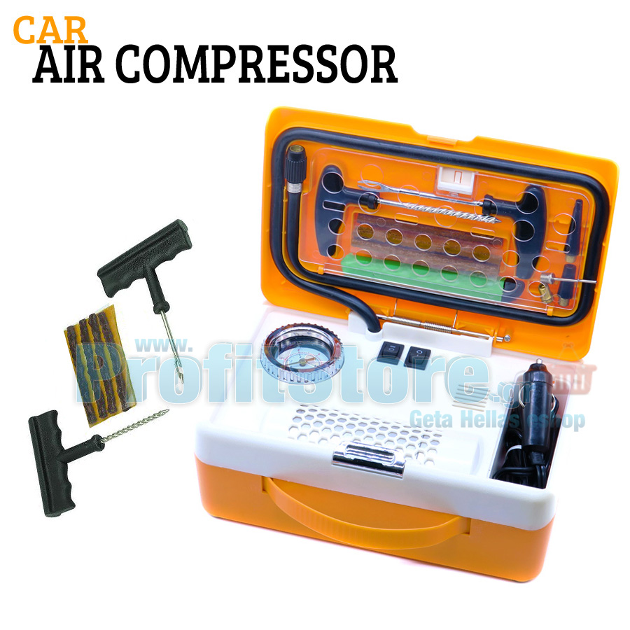 Φτιάξτε το λάστιχο του αυτοκινήτου σας ή της μηχανής σας επιτόπου, γρήγορα και αποτελεσματικά με αυτό το πλήρες σετ επιδιόρθωσης ελαστικών με ενσωματωμένο compressor ισχυρής παροχής 25Lt/m.
