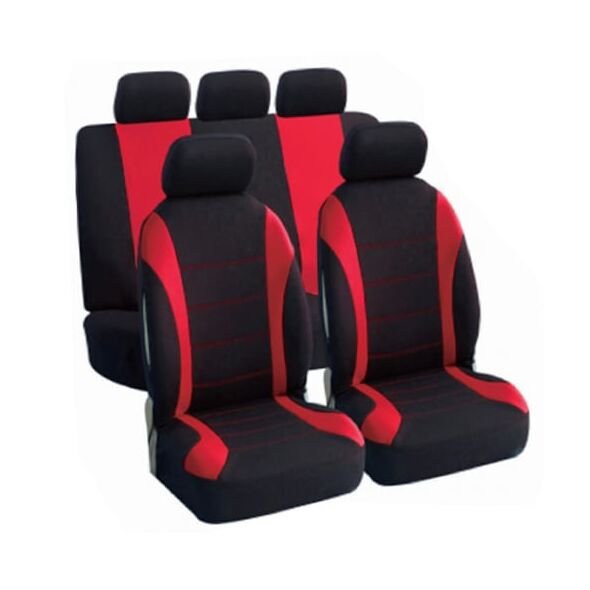 Πλήρες Σετ 9τμχ Universal Προστατευτικά Υφασμάτινα Καλύμματα Καθισμάτων & Μαξιλαριών Αυτοκινήτου με Κόκκινες Ραφές & Μαύρο