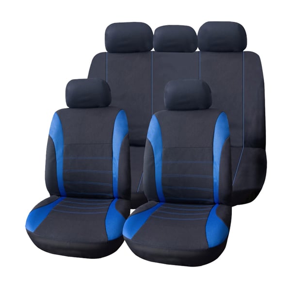 Πλήρες Σετ 9τμχ Universal Υφασμάτινα Προστατευτικά Καλύμματα Καθισμάτων Αυτοκινήτου Ανθρακί-Μπλε OEM