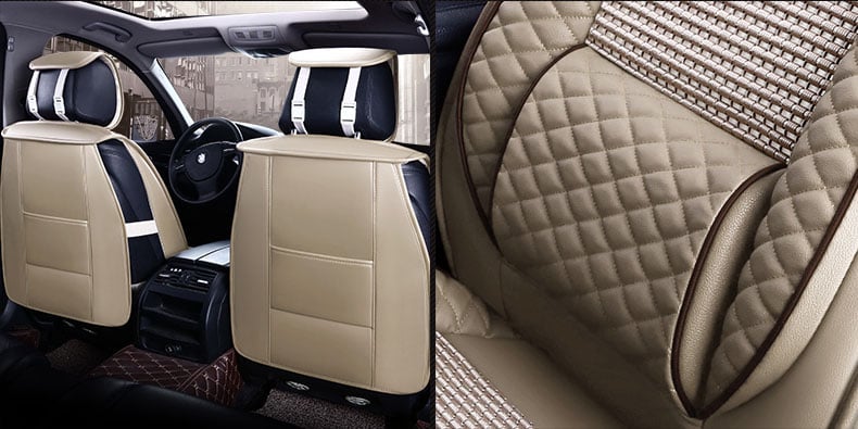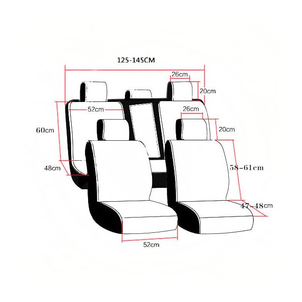 Ολοκληρωμένο υπερπολυτελές σετ καλυμμάτων αυτοκινήτου το οποίο περιλαμβάνει συνολικά 9 τεμάχια: 2 τεμάχια για τα μπροστινά καθίσματα, 4 τεμάχια για τα πίσω καθίσματα, 2 τεμάχια για το μεσαίο πίσω κάθισμα (τεμπέλη), 1 τεμάχιο για το προσκέφαλο του μεσαίου πίσω καθίσματος.