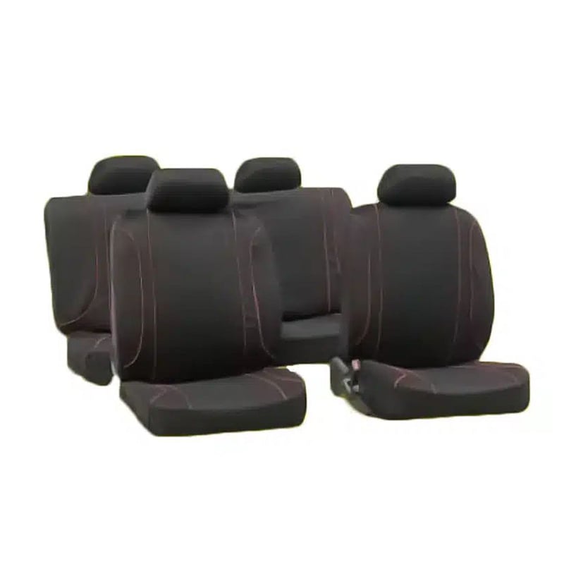 Το σετ καλυμμάτων αυτοκινήτου  από πολυεστερικά υλικά σε μαύρο χρώμα, είναι μια πρακτική και λειτουργική λύση για τη διατήρηση και την προστασία των καθισμάτων του αυτοκινήτου σας.