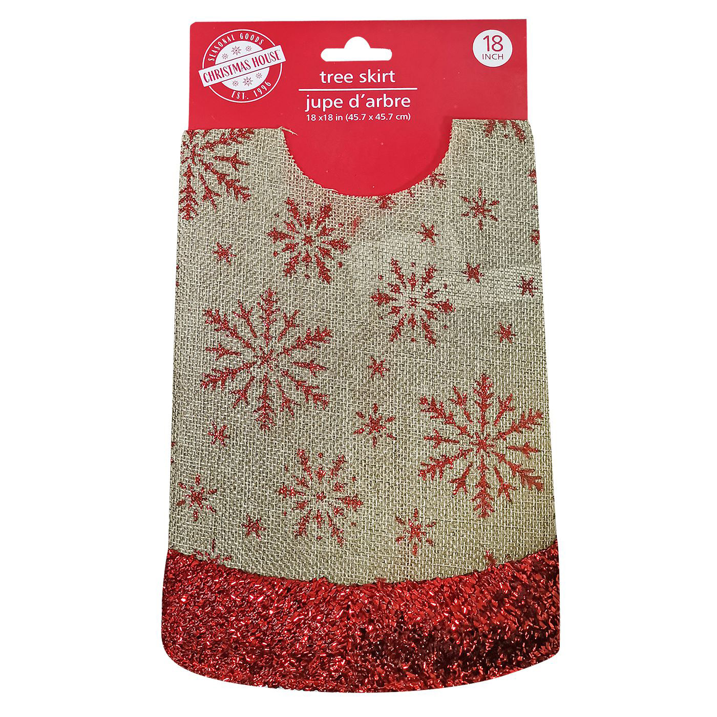 Ποδιά Χριστουγεννιάτικου Δέντρου Μπεζ με Κόκκινες Χιονονιφάδες Μικρή Φ46cm