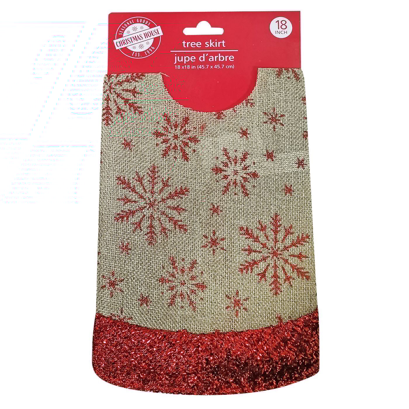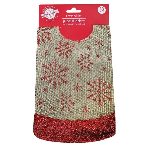 Ποδιά Χριστουγεννιάτικου Δέντρου Μπεζ με Κόκκινες Χιονονιφάδες Μικρή Φ46cm