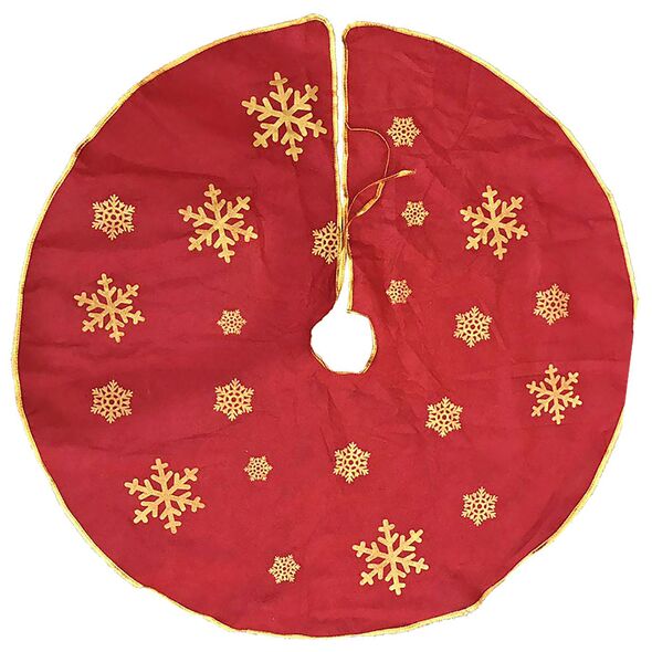 Ποδιά Χριστουγεννιάτικου δέντρου υφασμάτινη με χιονονιφάδες χρυσόσκονης, όπου θα δέσει τέλεια με το δέντρο σας.