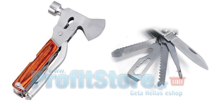Πολυεργαλείο 10 σε 1 με Σφυρί, Τσεκούρι, Πένσα, Μαχαίρι, Λίμα, Πριόνι, Ανοιχτήρι και Κατσαβίδια