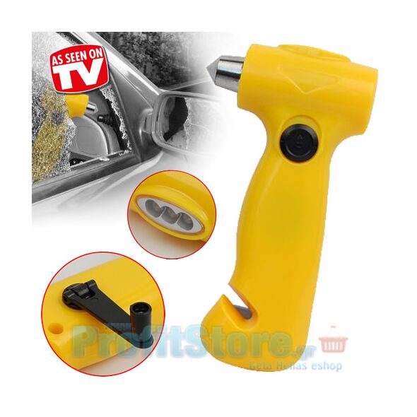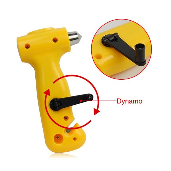 Εξαιρετικό Πολυεργαλείο εκτάκτου ανάγκης για το αυτοκίνητο με σφυρί, ειδικό κόπτη για ζώνες ασφαλείας και φακό LED που φορτίζει με Δυναμό.