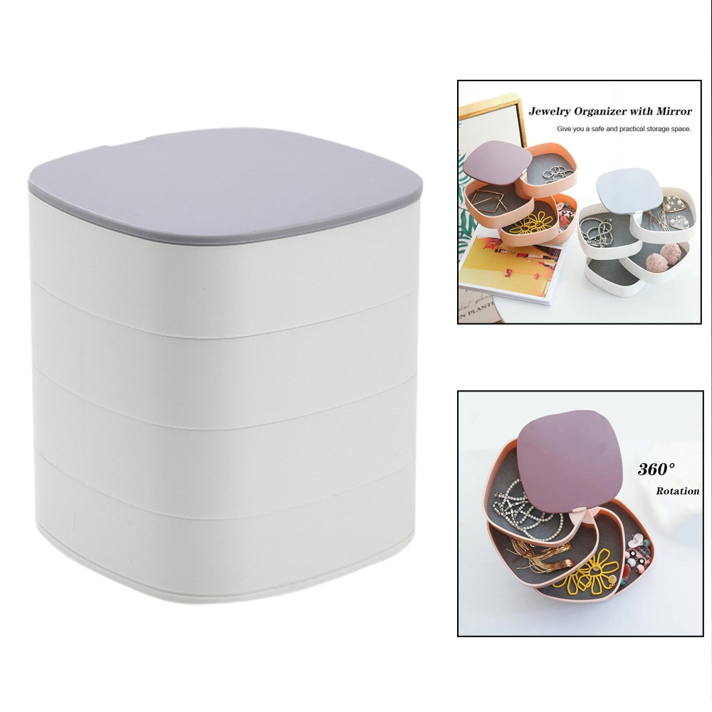 • 1 x Πολυλειτουργική Κοσμηματοθήκη - Μπιζουτιέρα - Κουτί Αποθήκευσης 4 Επιπέδων Περιστρεφόμενη 360° με Καθρέπτη 12x11x11cm