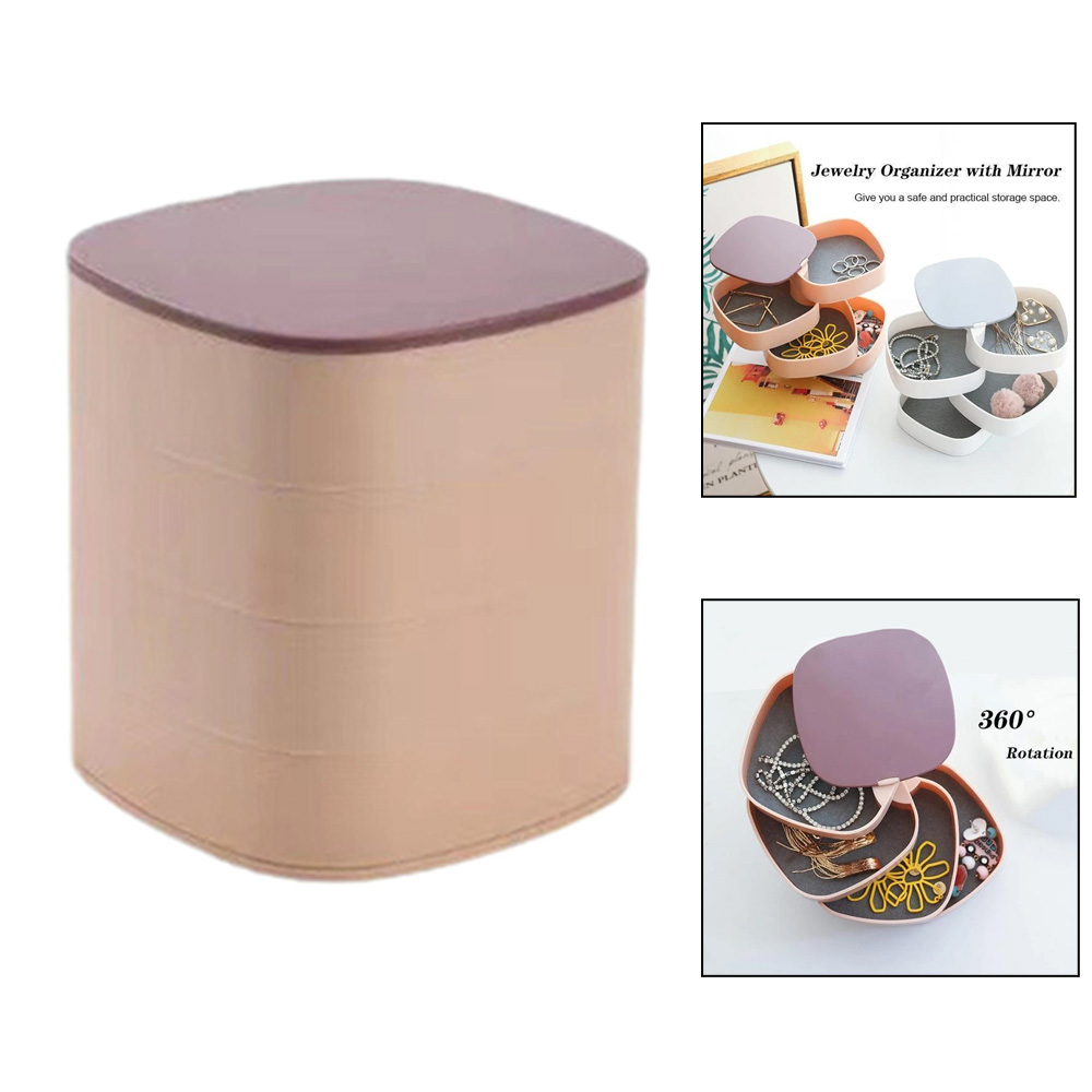 • 1 x Πολυλειτουργική Κοσμηματοθήκη - Μπιζουτιέρα - Κουτί Αποθήκευσης 4 Επιπέδων Περιστρεφόμενη 360° με Καθρέπτη 12x11x11cm