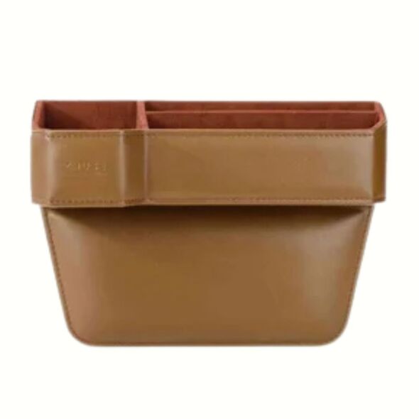 Πολυλειτουργική θήκη οργάνωσης αυτοκινήτου σε μαύρο, σκούρο καφέ ή καφέ χρώμα. Προσφέρει επιπλέον αποθηκευτικό χώρο και αποτρέπει την πτώση αντικειμένων. Ιδανική για οδηγούς, ταξί και επαγγελματικά οχήματα.