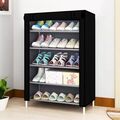 Πολυλειτουργική Υφασμάτινη Αδιάβροχη Παπουτσοθήκη με 5 Ράφια και Μεταλλικό Σκελετό 60x30x90εκ Μαύρο